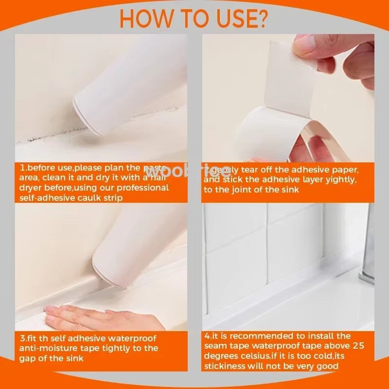 1 Roll PVC Sealing Strip Tape for Bathroom Bath Toilet Kitchen Caulk Tape Self Adhesive Waterproof Wall Sticker Mold Proof Tapes