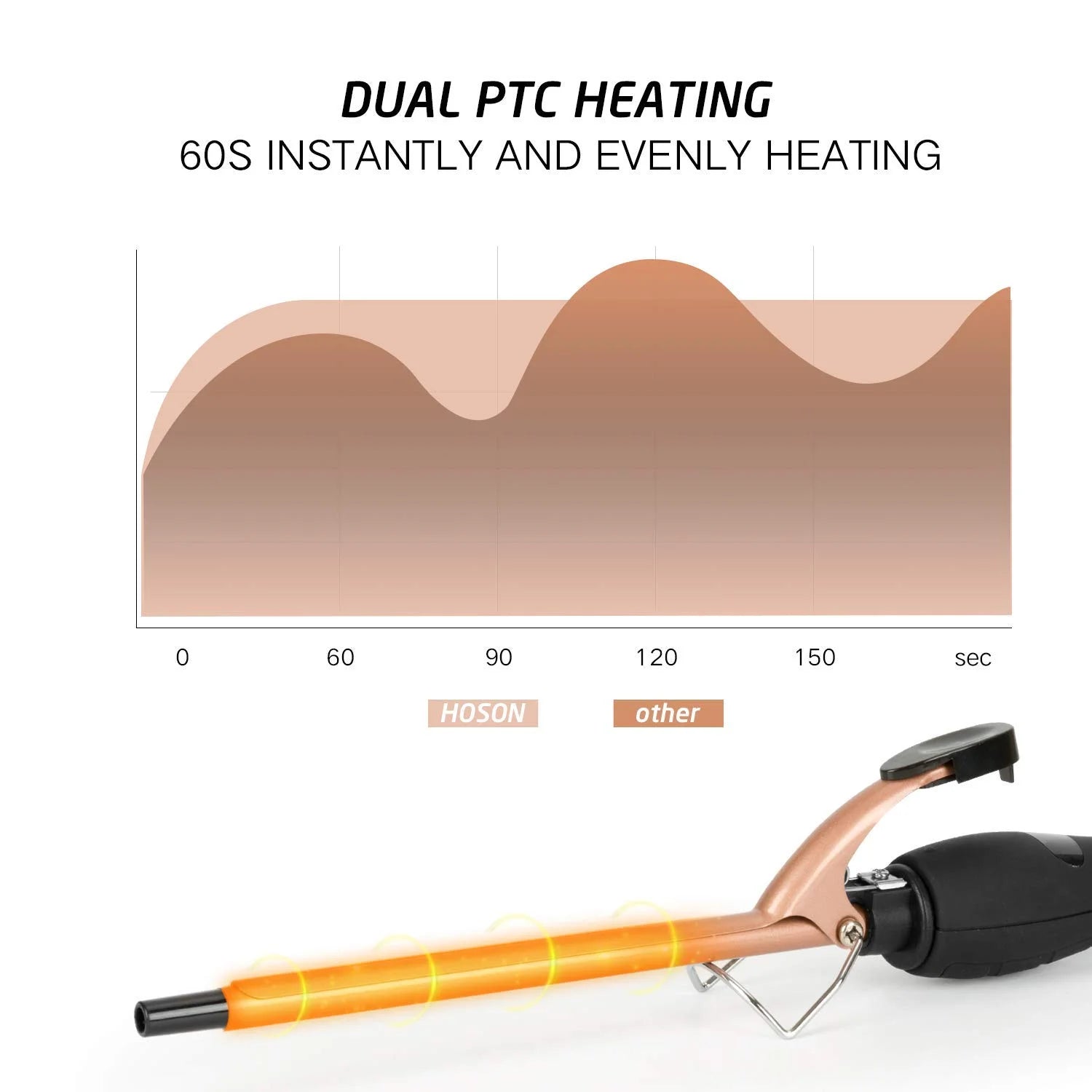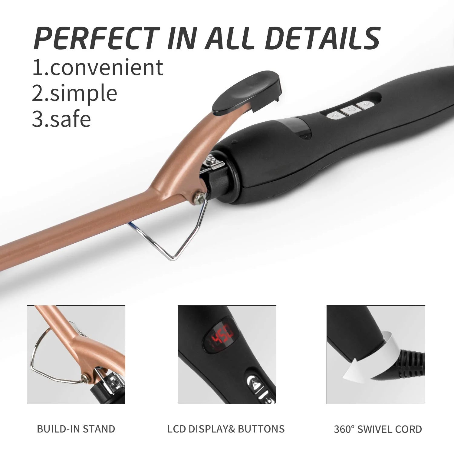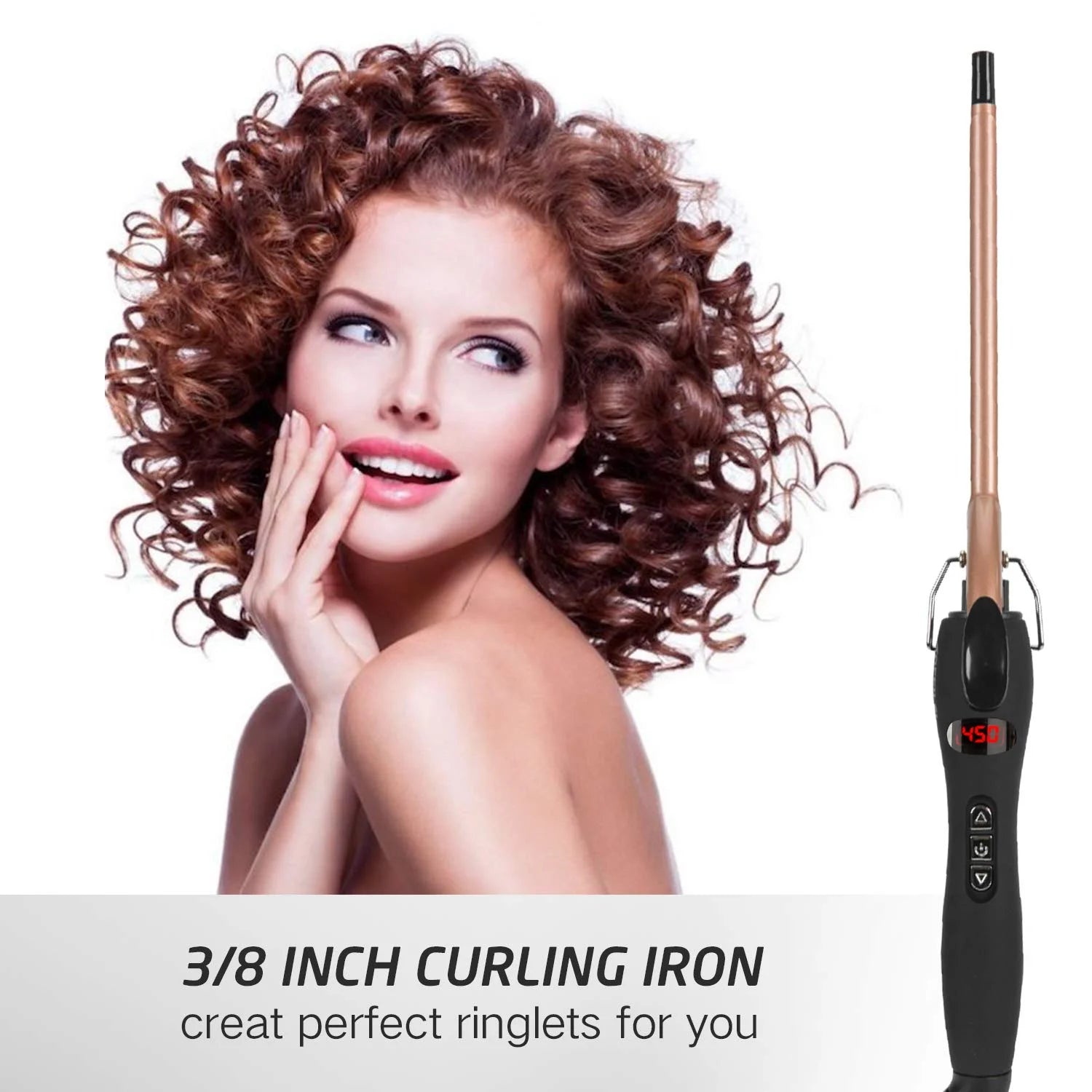 9Mm Thin Curling Iron Ceramic, 3/8 Inch Small Barrel Hair Curling Wand for Long & Short Hair, LCD Display with 9 Heat Setting Include Glove(Golden)