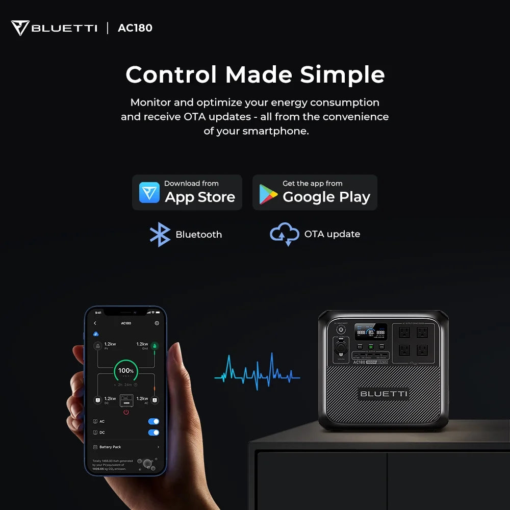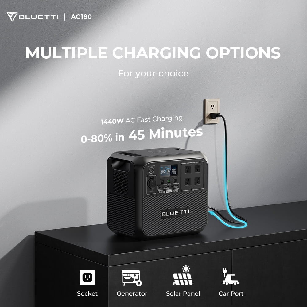 The Bluetti AC180 Solar Generator is a reliable and portable power solution for off-grid living, home use, camping, and RV...
