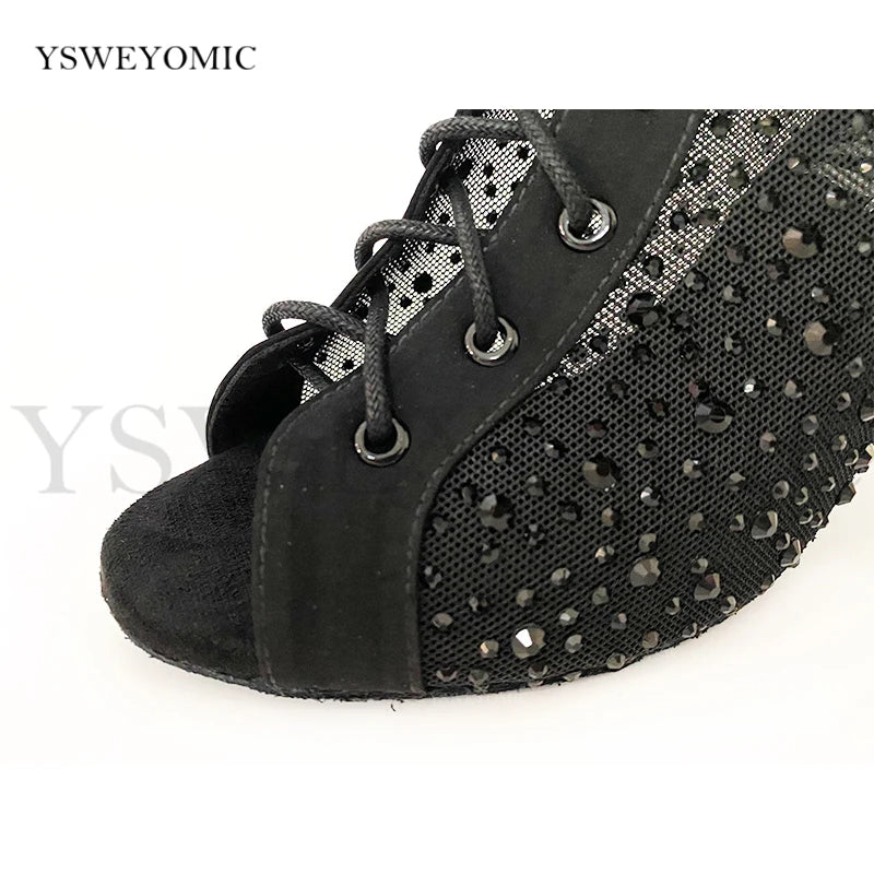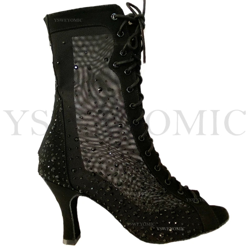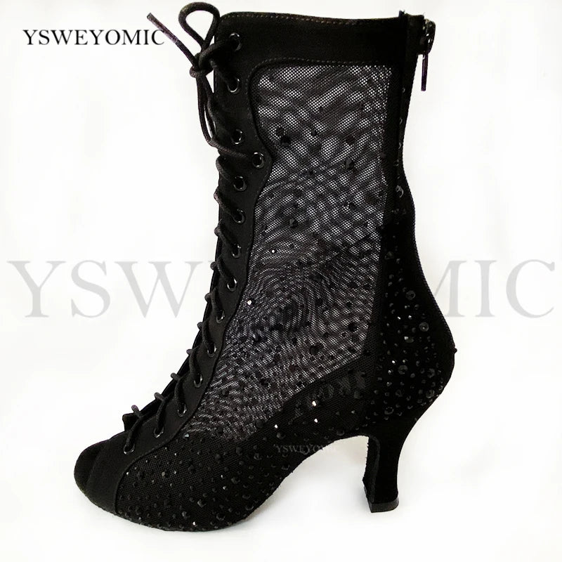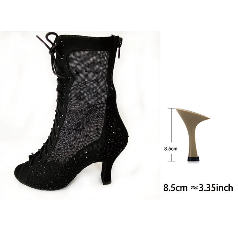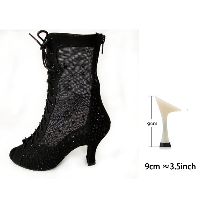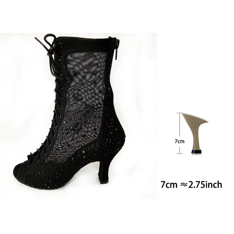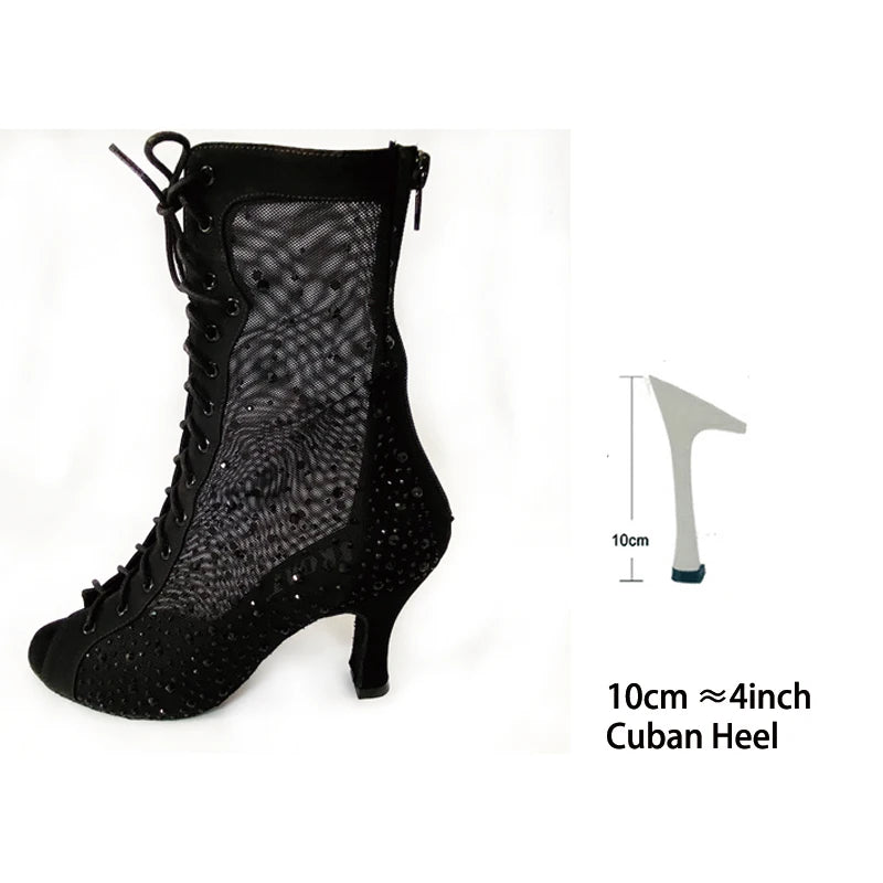 Rhinestones Latin Dance Boots Black Mesh Soft insole High Quality Training Latin Salsa Dance Shoes For Girls - COLOR: Tan...