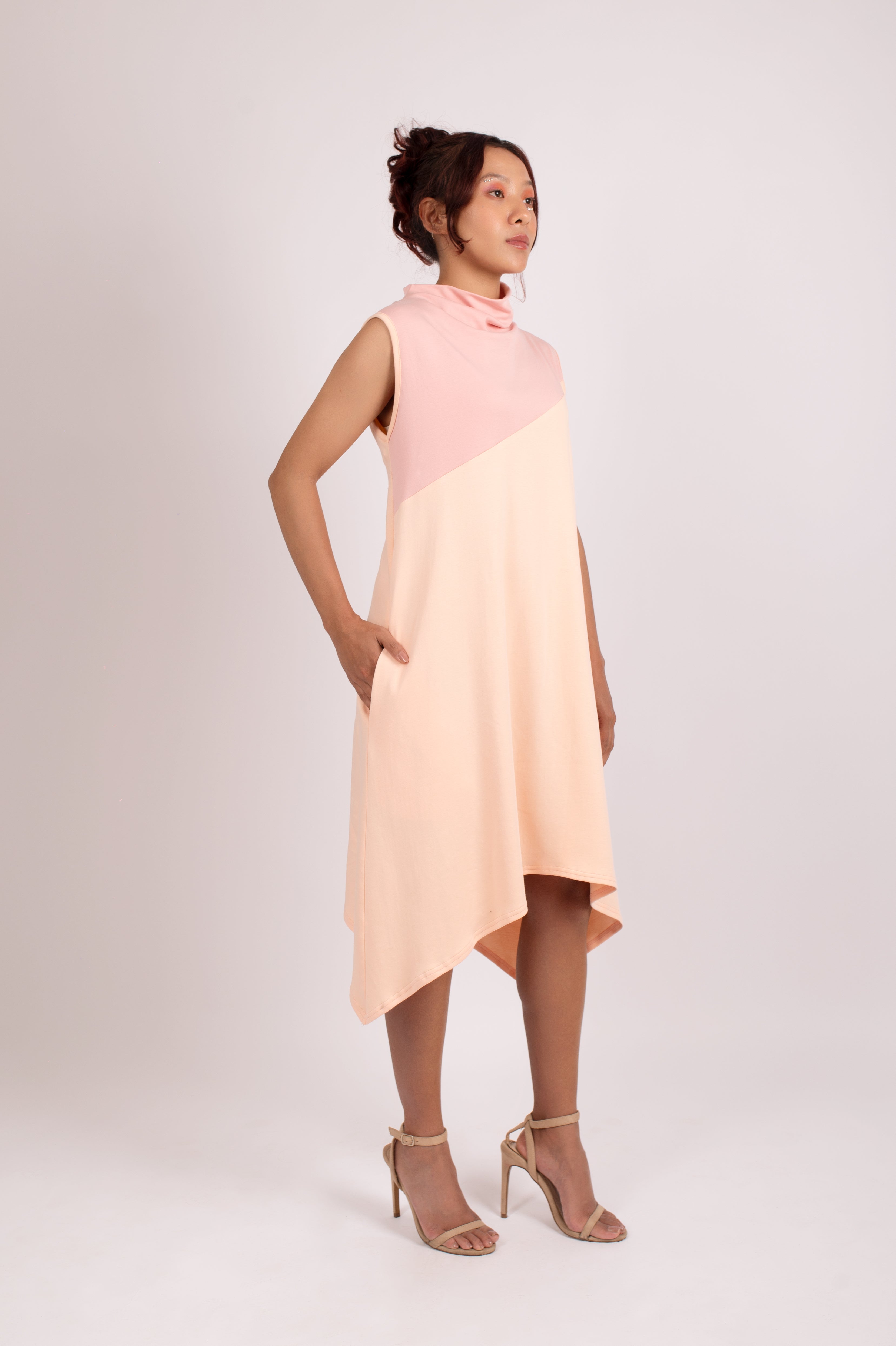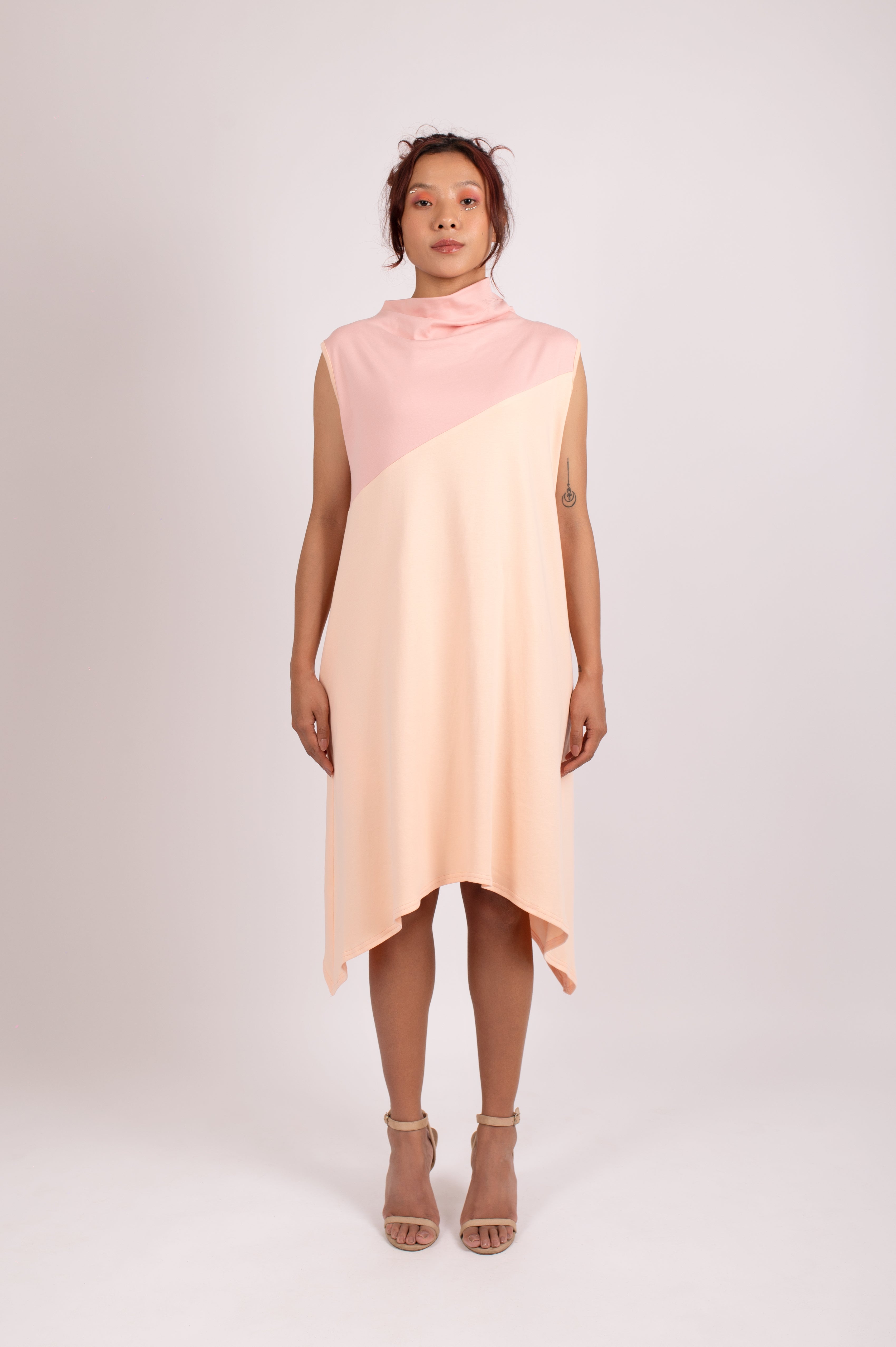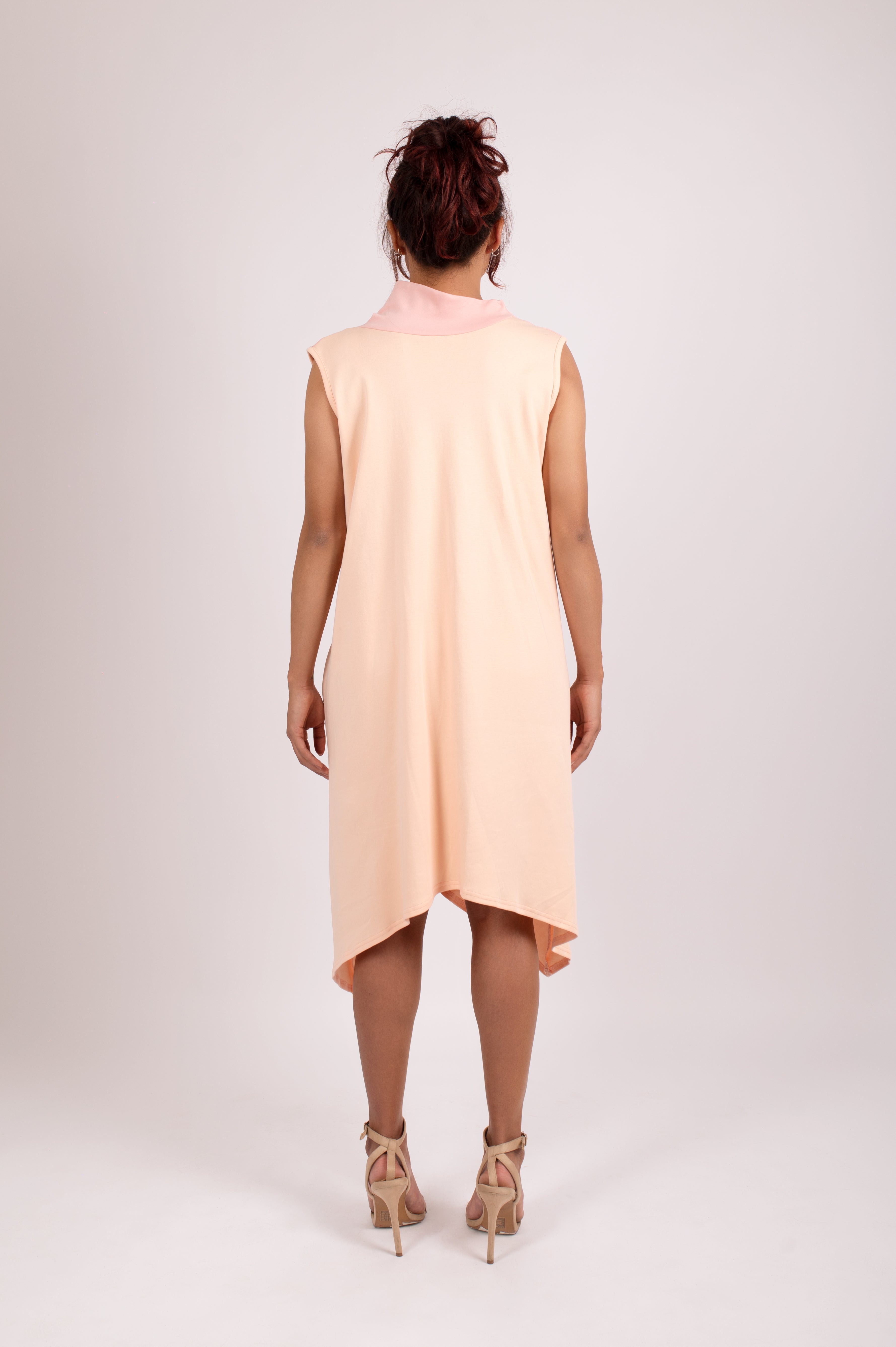 A sleeveless abstract coul neck pleated dress with an asymetric hem. Lala is a sustainable fashion brand created for you...