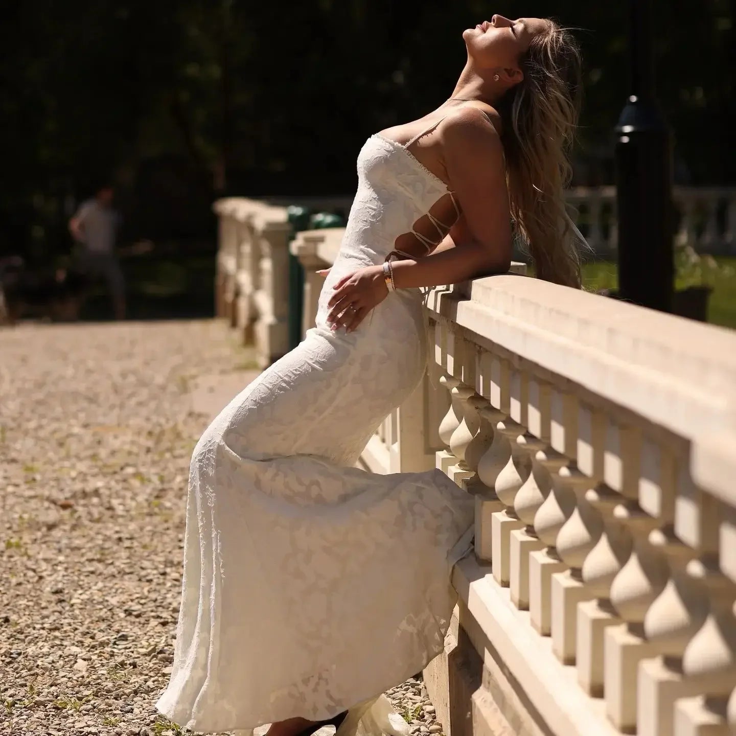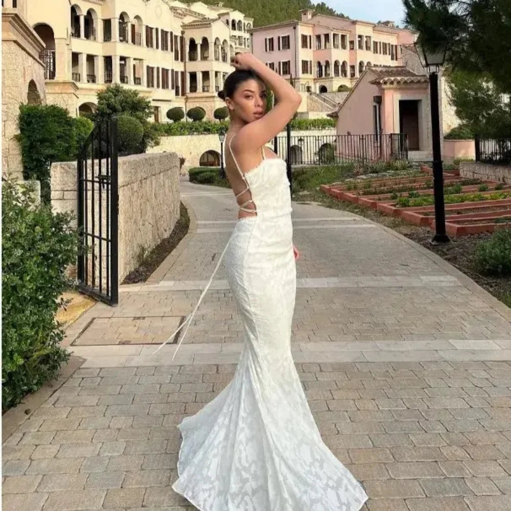Elegant and Beautiful Dress Women 2024 White Backless Wedding Guest Dress Sexy Lace up Long Normal Party Dresses