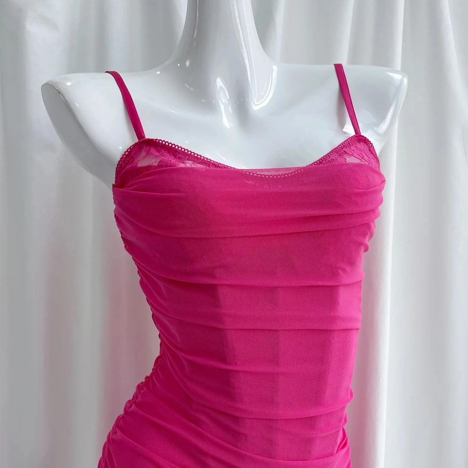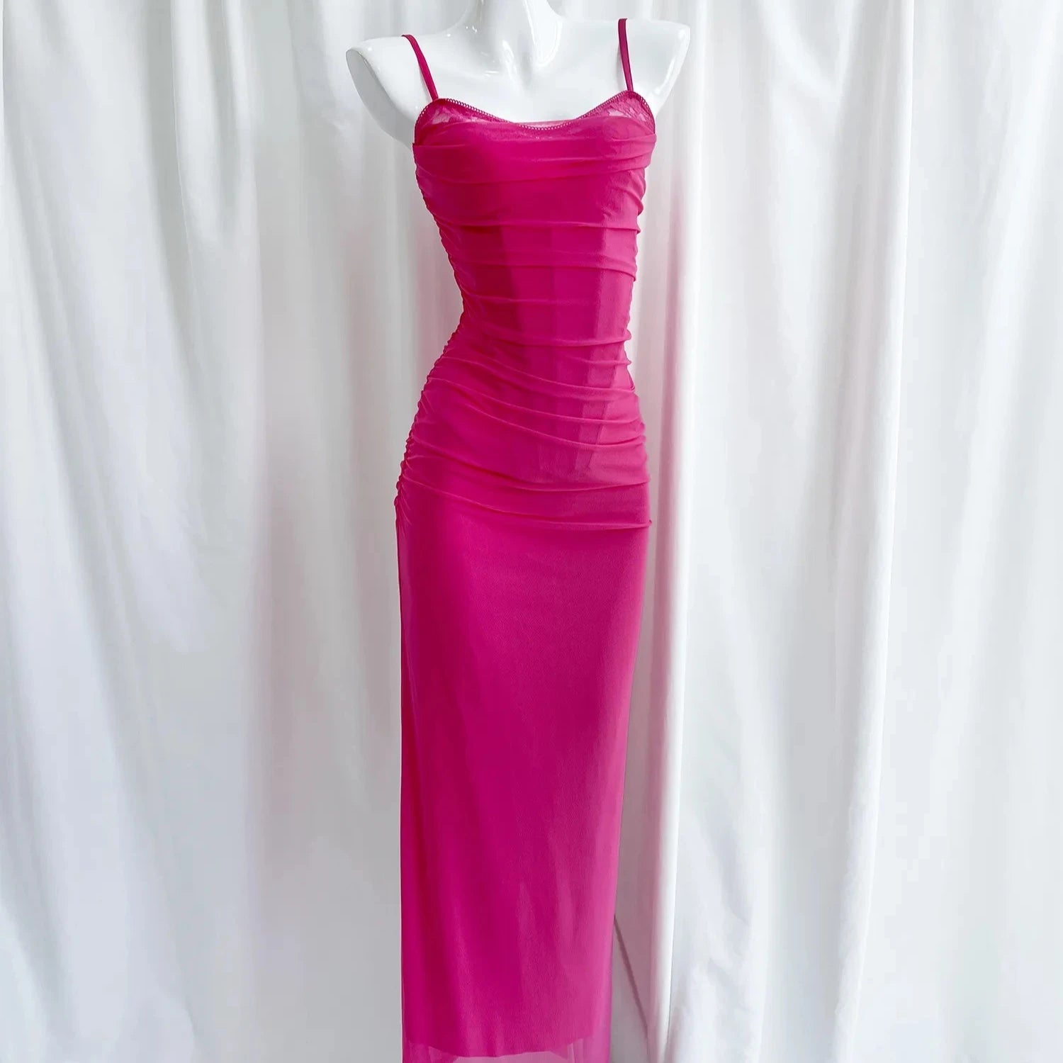 Elegant Mesh Sexy Maxi Dress for Women Light Purple Fishbone Spaghetti Strap Sleeveless Backless Party Long Dress New