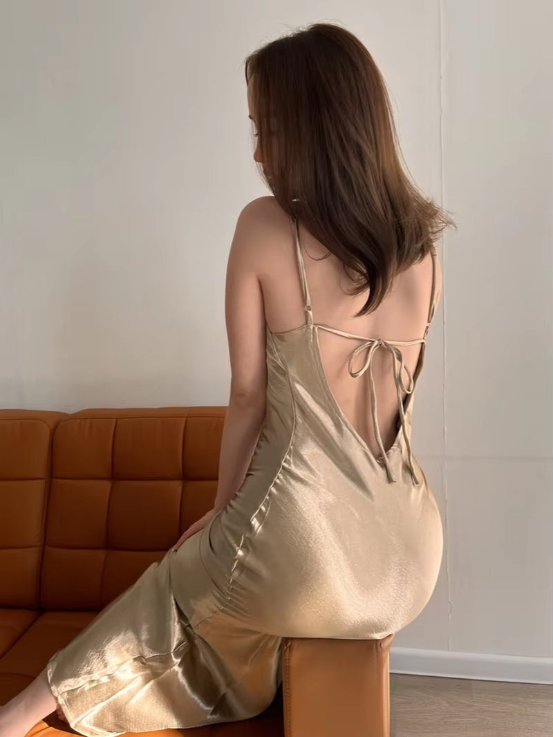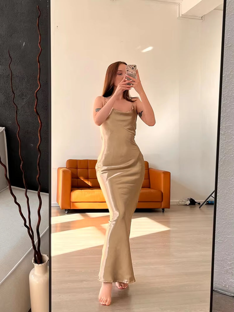 Elegant Satin Backless Maxi Dress for Women Gown Summer Spaghetti Strap Sleeveless Party Long Dress Vestido Robe Femmes