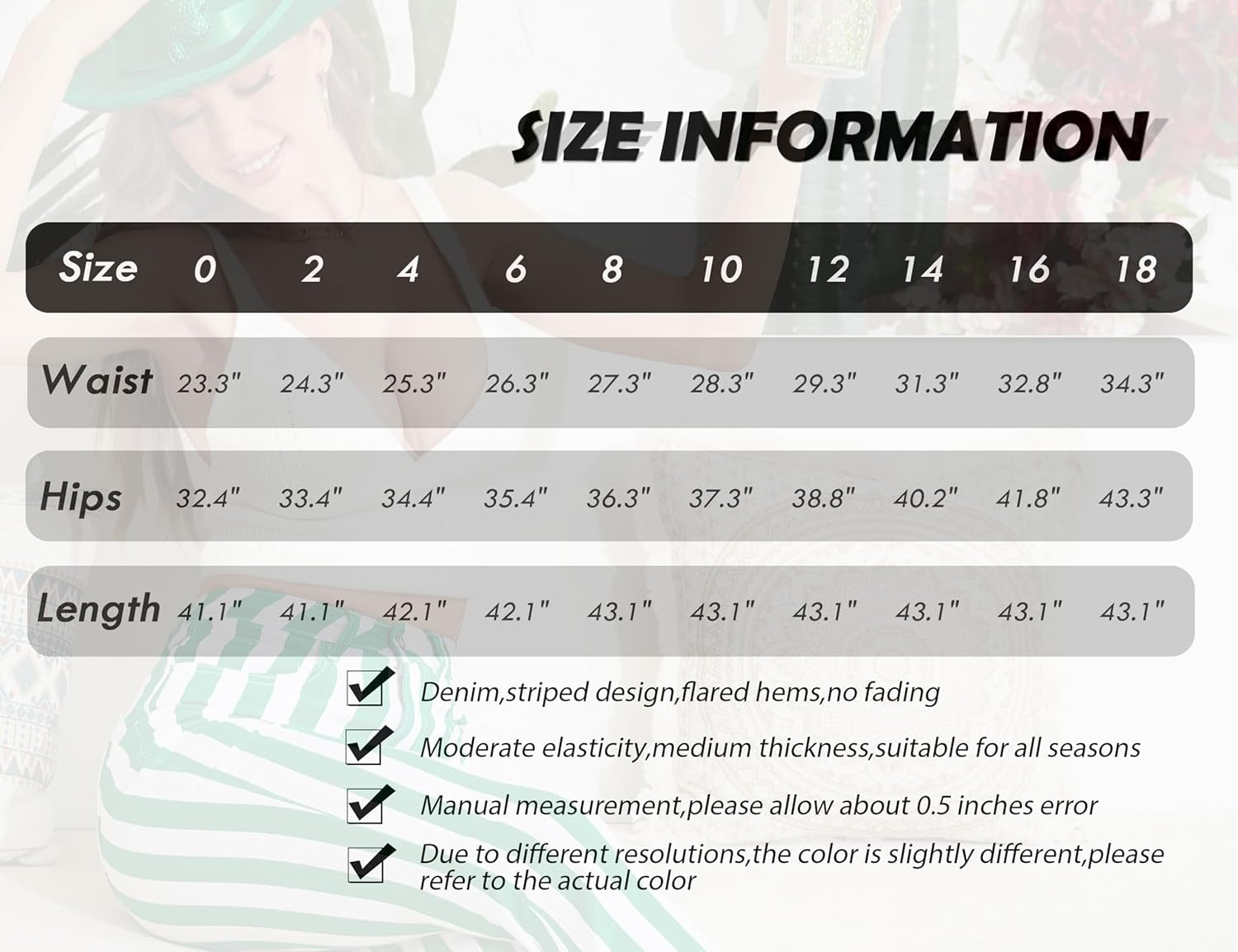 Product Description Green White Stripe Flare Jeans Women Classic Vintage Fashion Bell Bottom Pants Green white striped flared pants for...