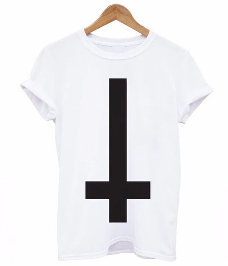 Inverted Cross Printed Men T Shirt Religion Swag Hipster Girl Retro Tshirt Cotton Custom Tee Shirt for Men Women plus Size