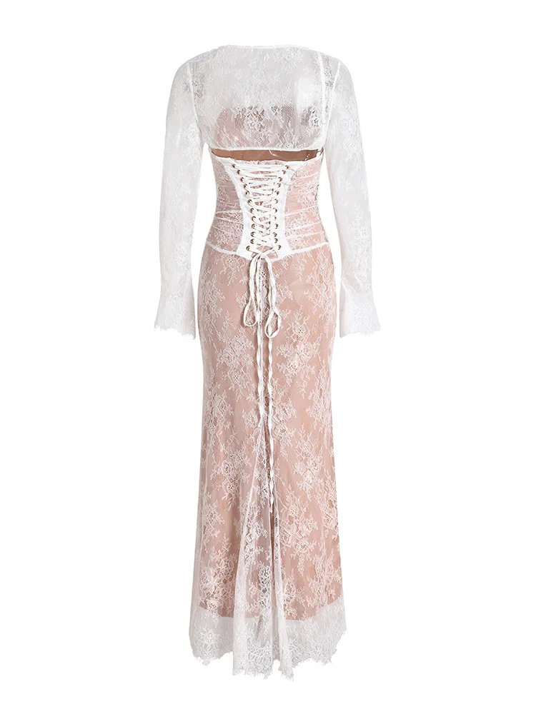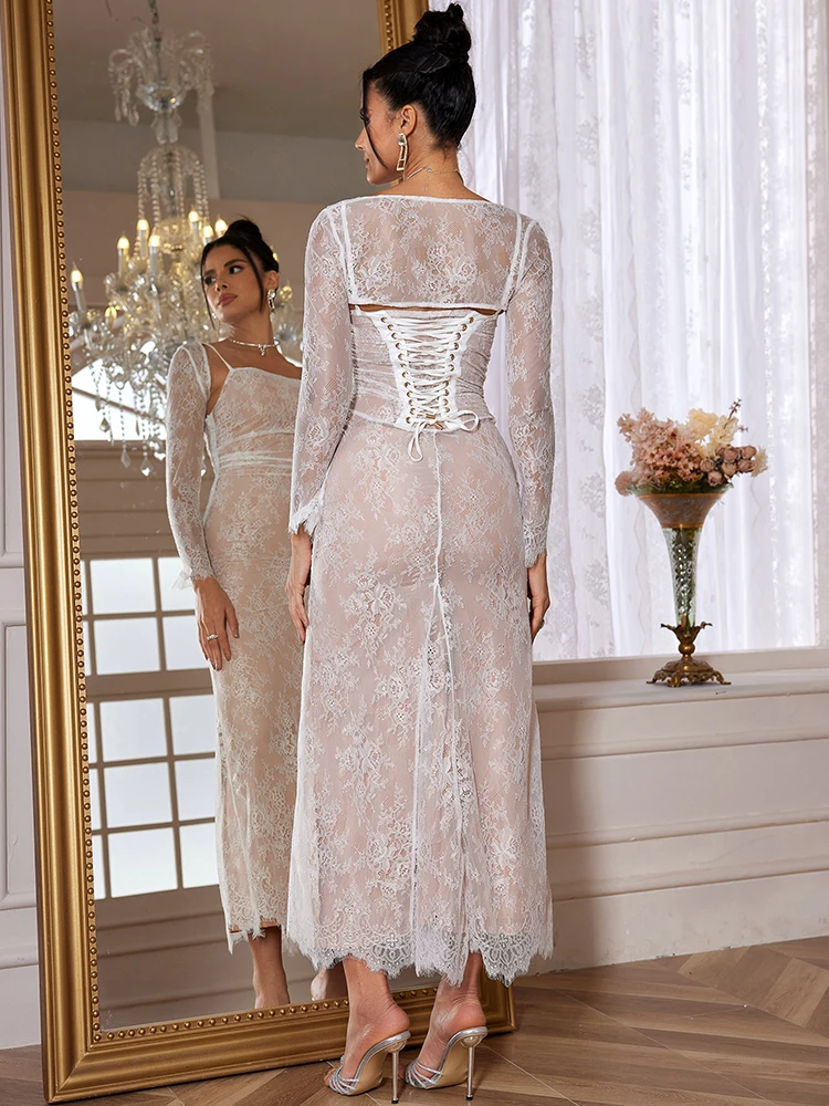 Maxi Women Wedding Party Dresses Elegant Vintage Lace Bodycon Formal Occasion Dress Detachable Cape Dress Female