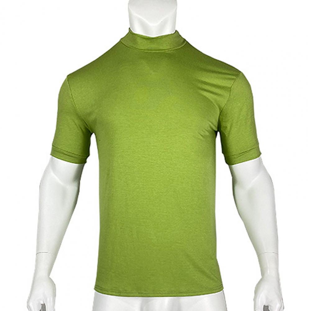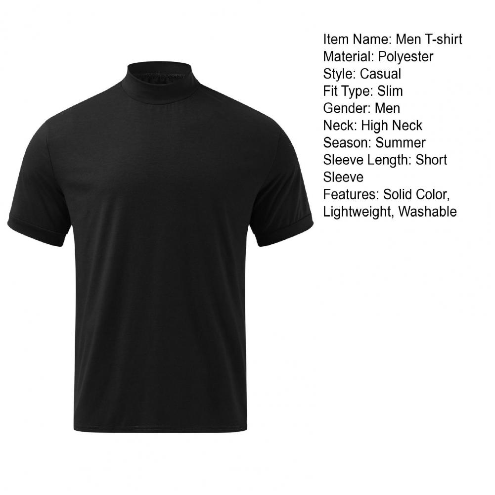 Men T-shirt Solid Color High Neck Breathable Extra Soft Sweat Absorption Dress-up Polyester Summer Short Sleeve Men Shirt Top for...