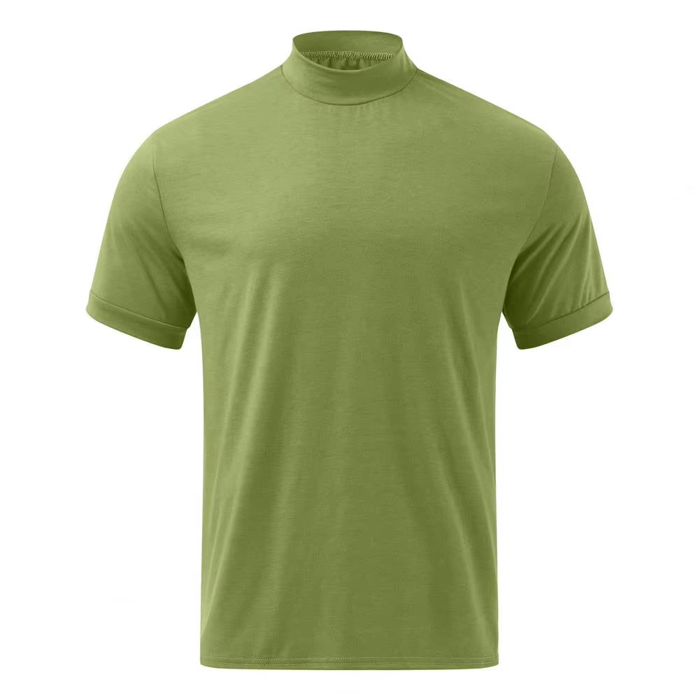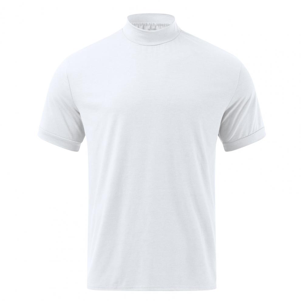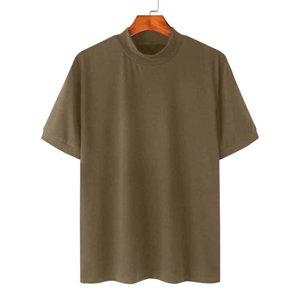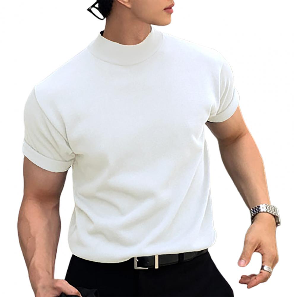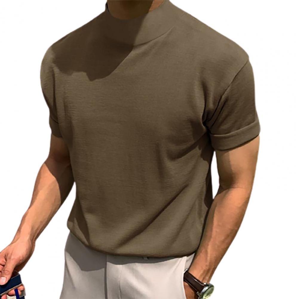 Men T-Shirt Solid Color High Neck Men Top Sweat Absorption Dress-Up Fitness Top Summer Short Sleeve Male Shirt Top for Men