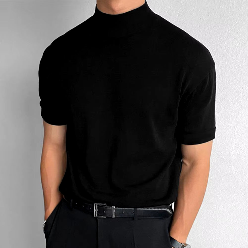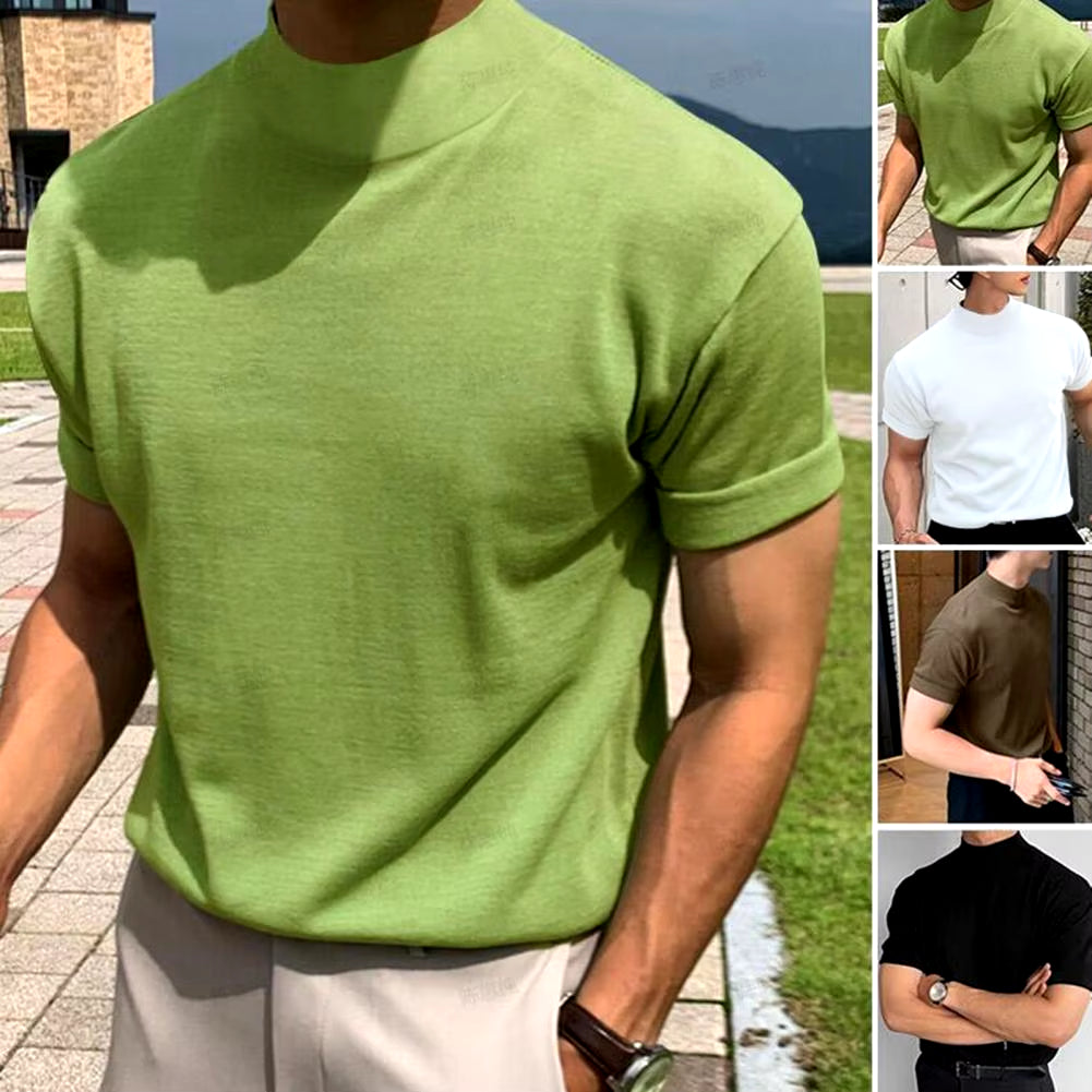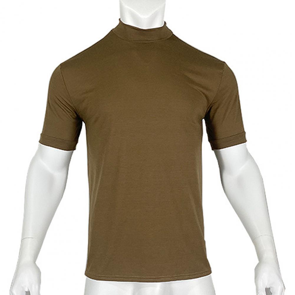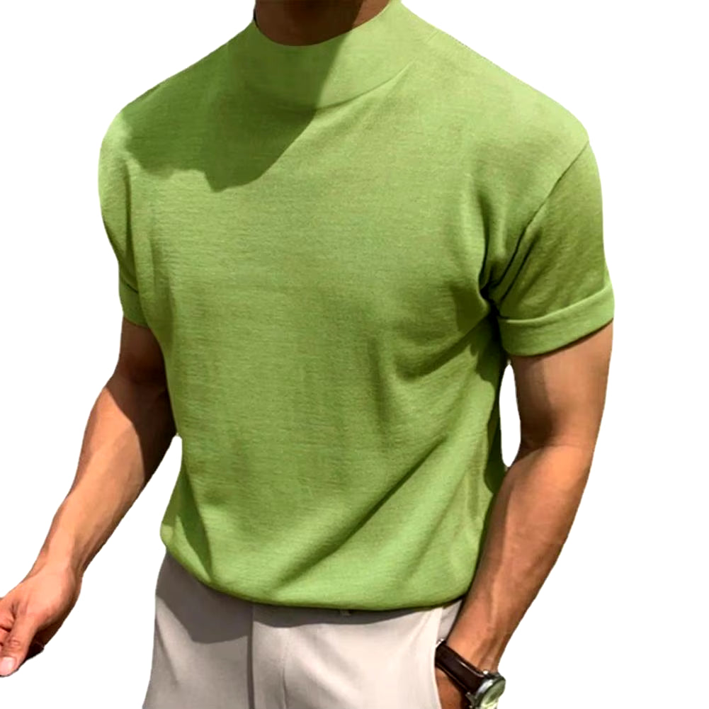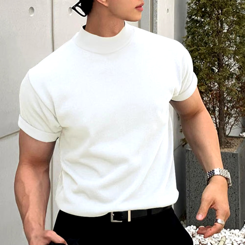 Men T-Shirt Solid Color High Neck Men Top Sweat Absorption Dress-Up Fitness Top Summer Short Sleeve Male Shirt Top for Men