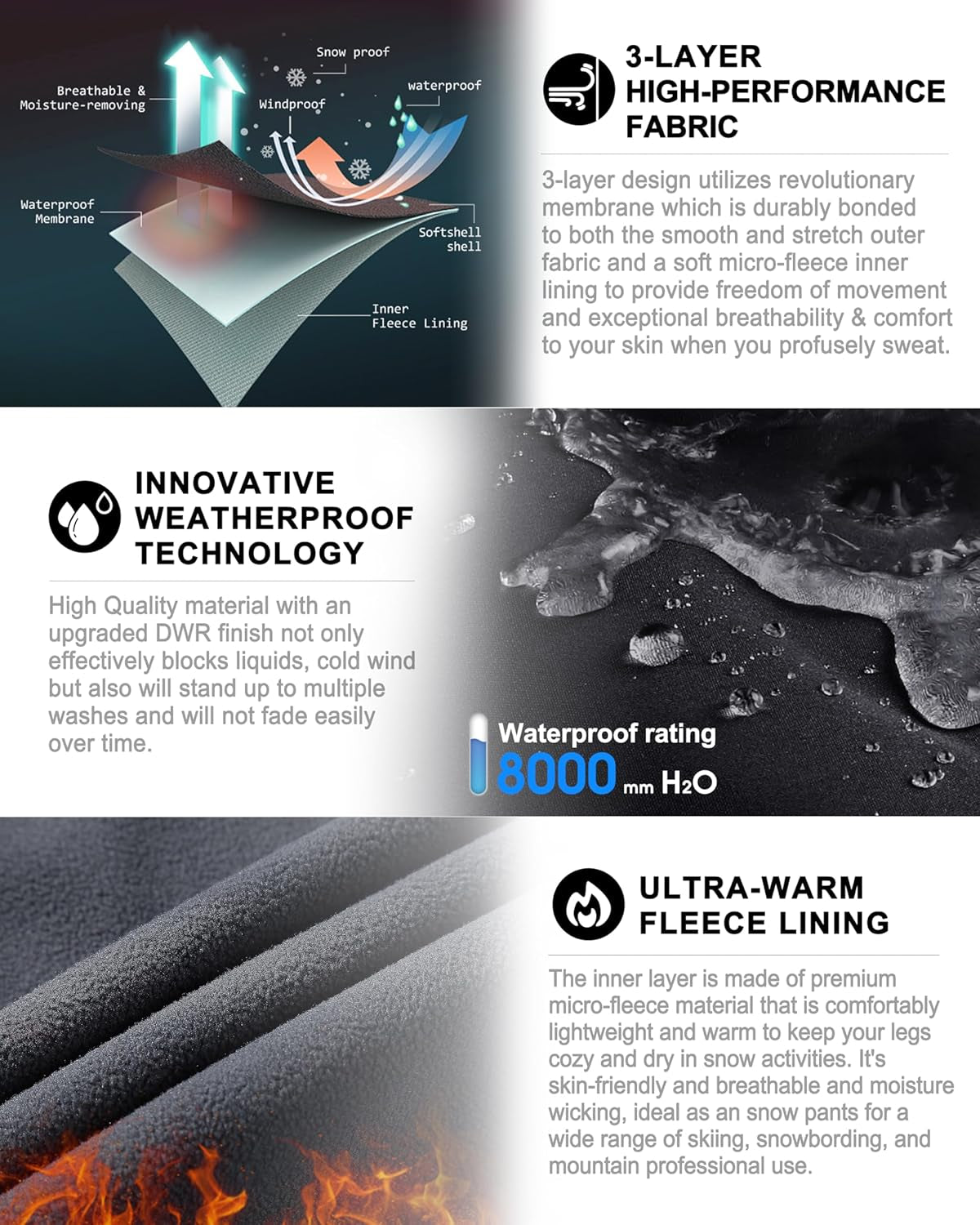 Men'S Lite Waterproof Windproof Fleece Lined Warm Hiking Ski Snow Pants Expandable-Waist