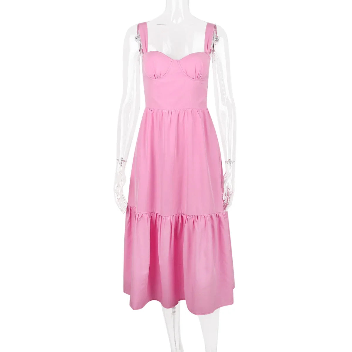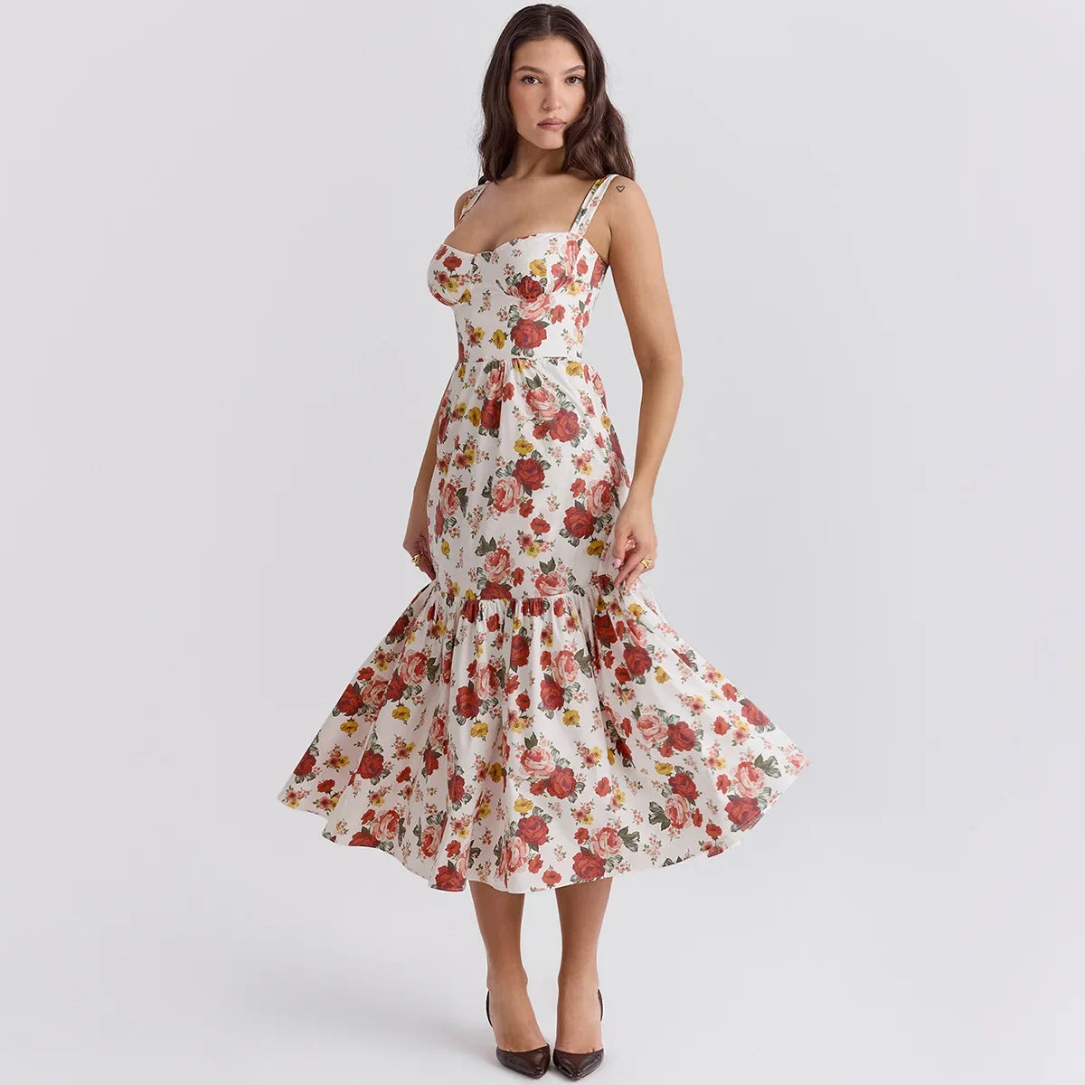 Mingmingxi Summer Elegant Holiday Dress 2024 Causal Ruffle Hems Fit and Flare Dress with Pocket Mid Length Floral Print Dress