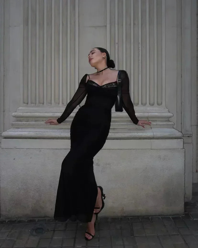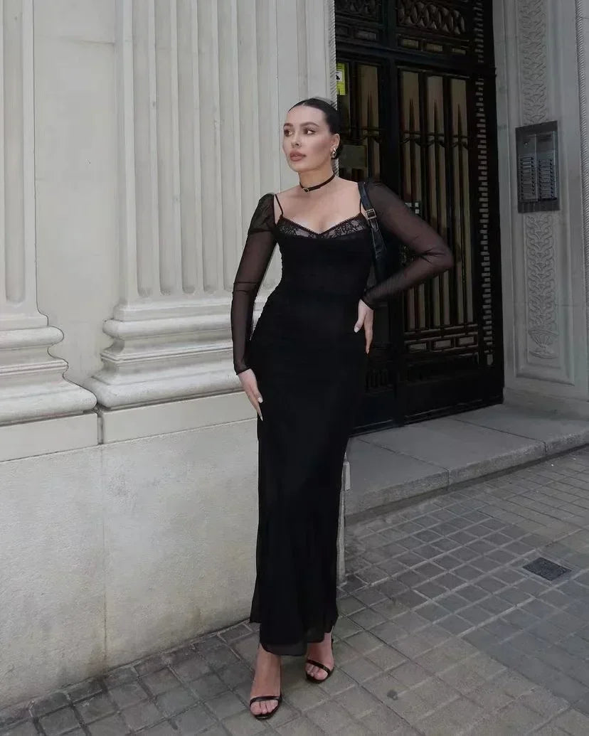 Mingmingxi Winter Black Formal Occasion Dresses Elegant and Beautiful Long Sleeve Bodycon Party Evening Dresses Long Vestidos