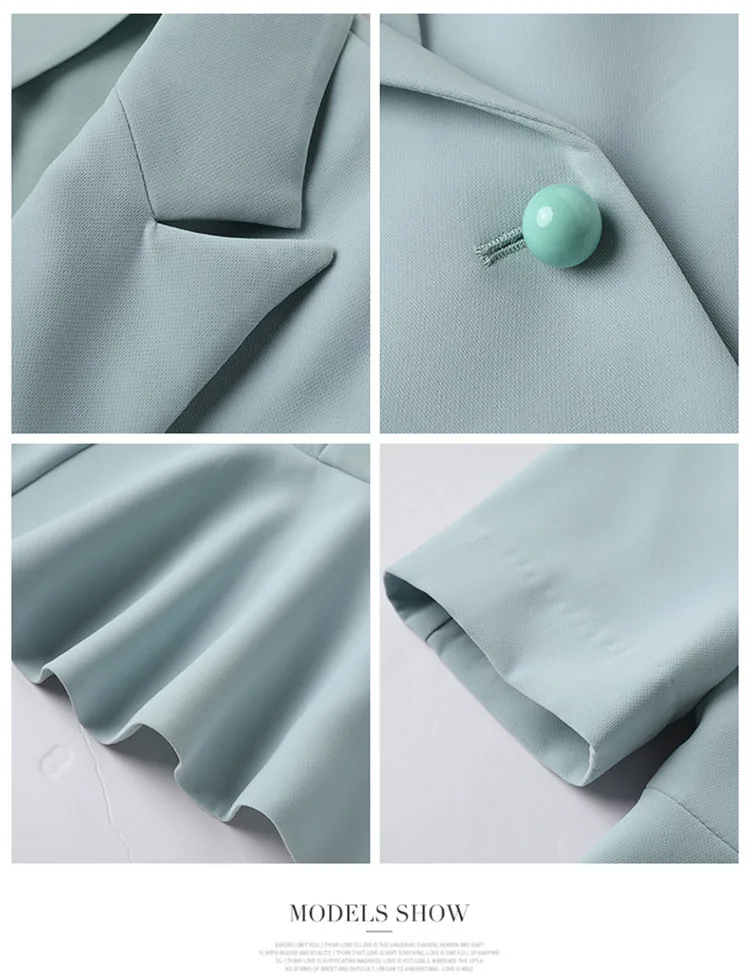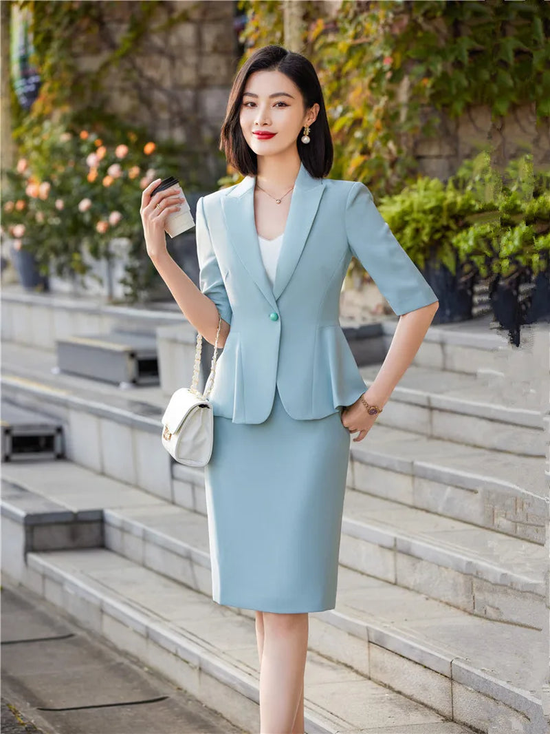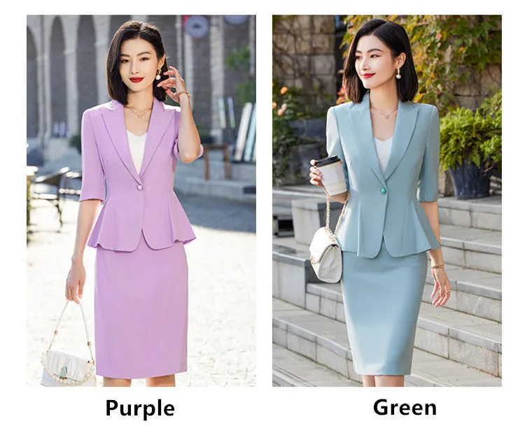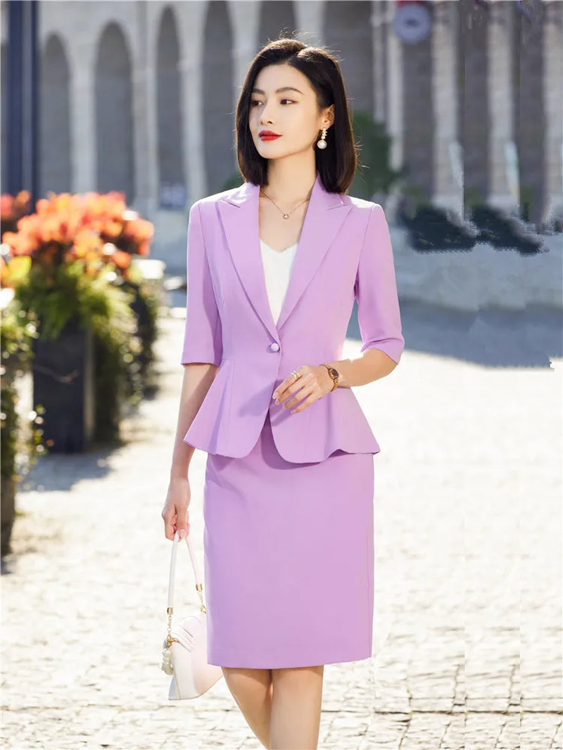 Purple Summer Skirt Suit Set for Women Short Sleeve Ruffle Hem Blazer&Midi Skirt Office Ladies 2 Pieces Work Wear Fashion Suits