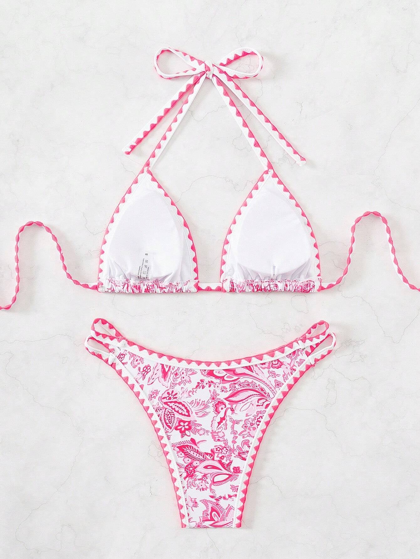 Swim Vcay Women'S Summer Beach Floral Print Halter Neck Tie Bikini Set