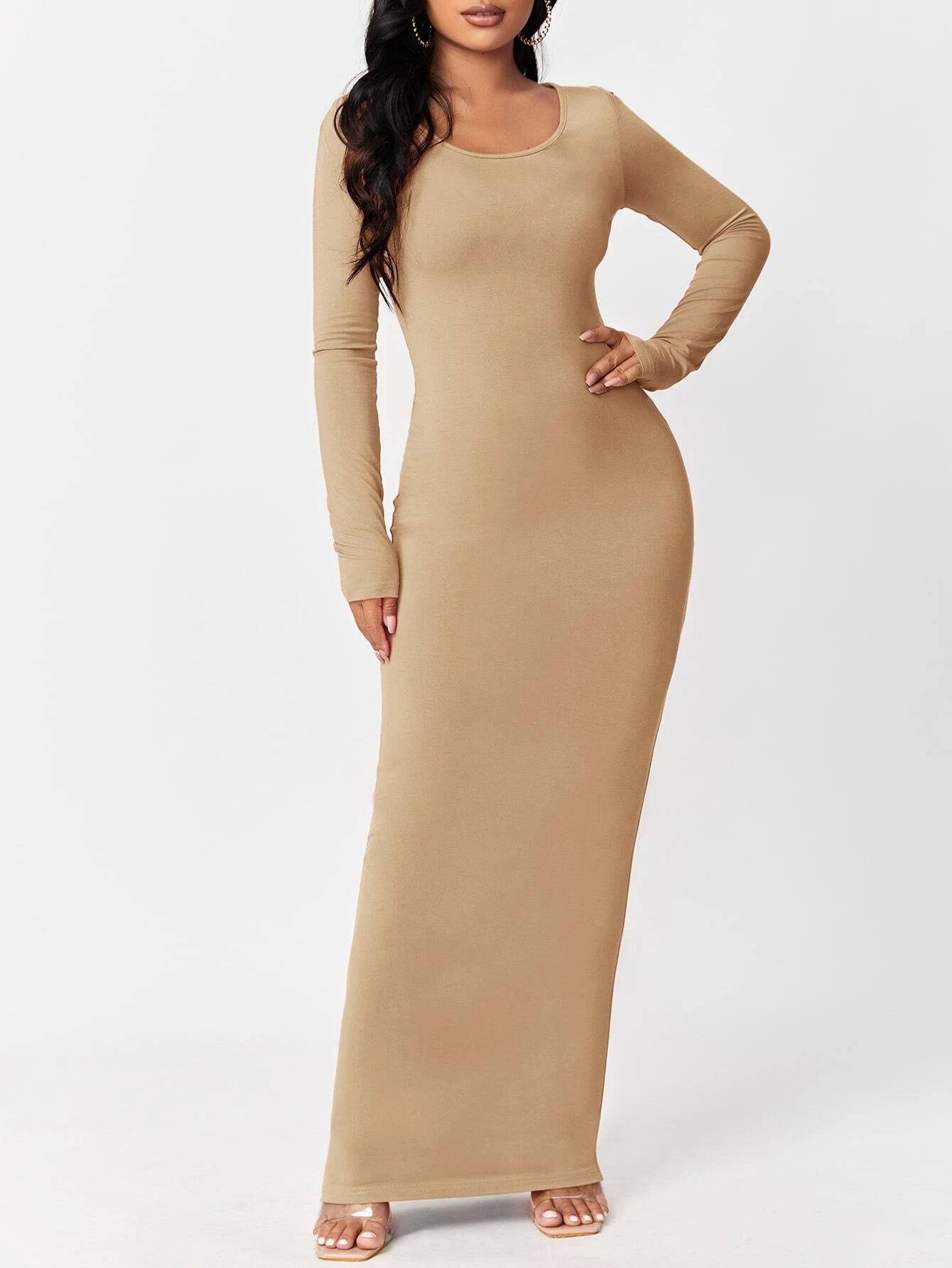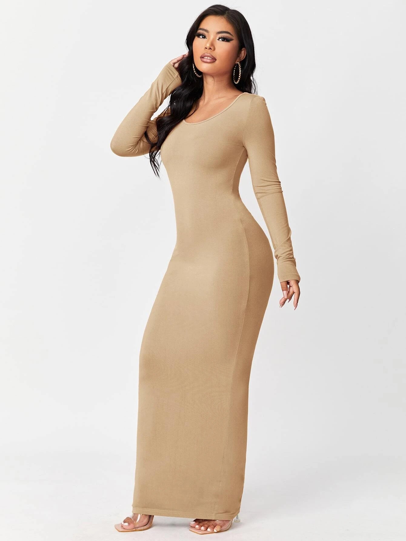 Neckline: Scoop Neck Sleeve Type: Regular Sleeve Hem Shaped: Pencil Waist Line: Natural(Mid Waist) Type: Bodycon Details: Backless Lined For...