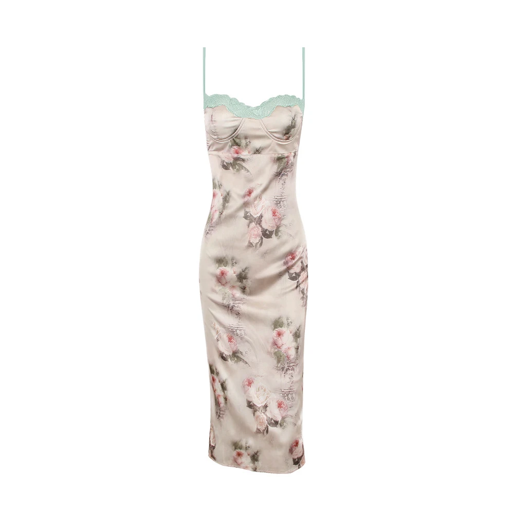 Wedding Guest Dresses for Women 2023 Summer Satin Dress Stretchy Evening Party Dress Floral Elegant Night Club Festival Outfit