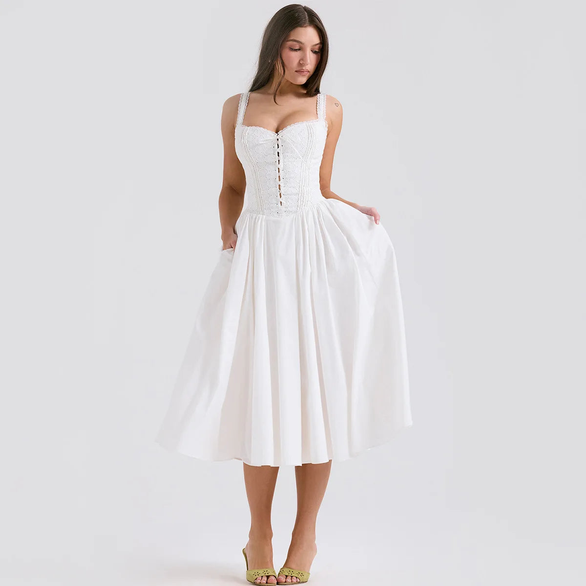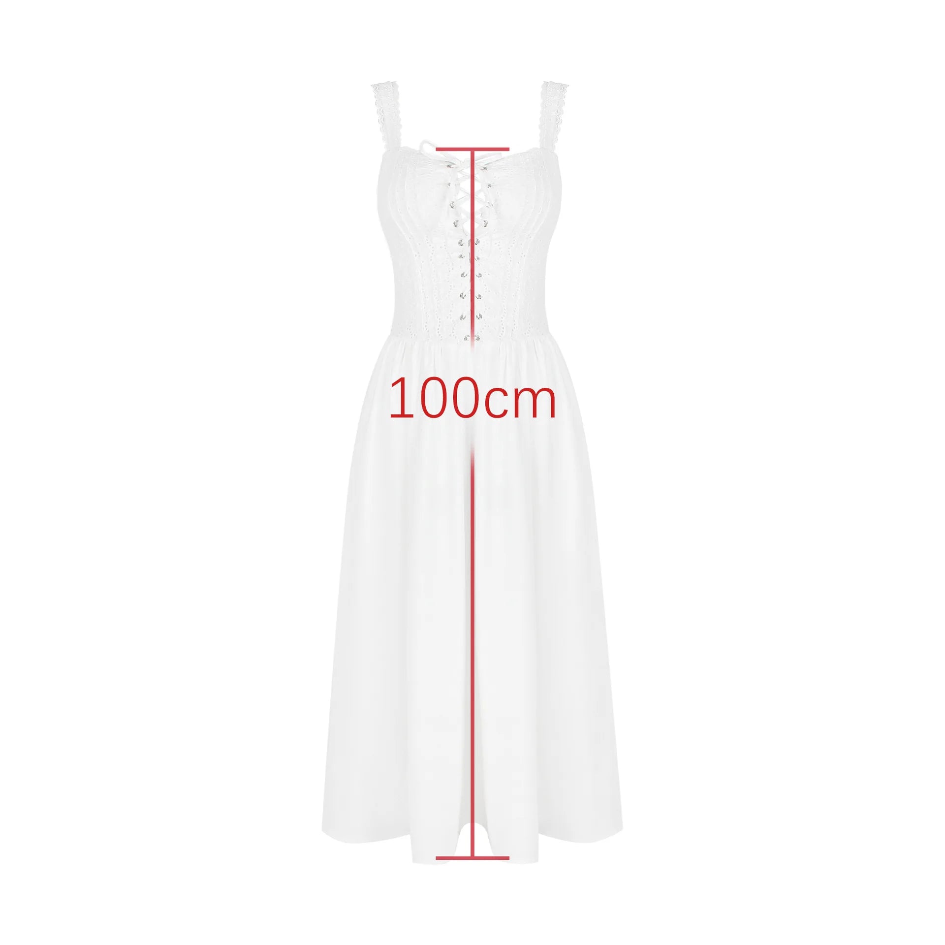 White Summer Jacquard Dress 2024 New Arrivals Midi Elegant Party Dresses White Spaghetti Strap Lace up Women'S Clothing