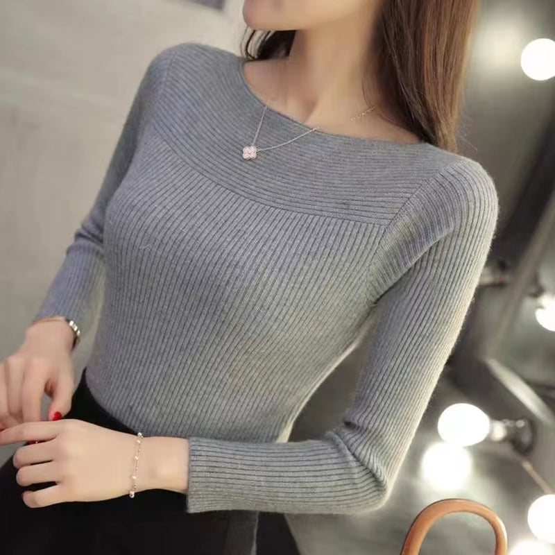 Women Ribbed Slash Neck Slim Sweater Knitted Long Sleeve Office Sweaters Casual Solid Pullovers for Women 2024 Autumn