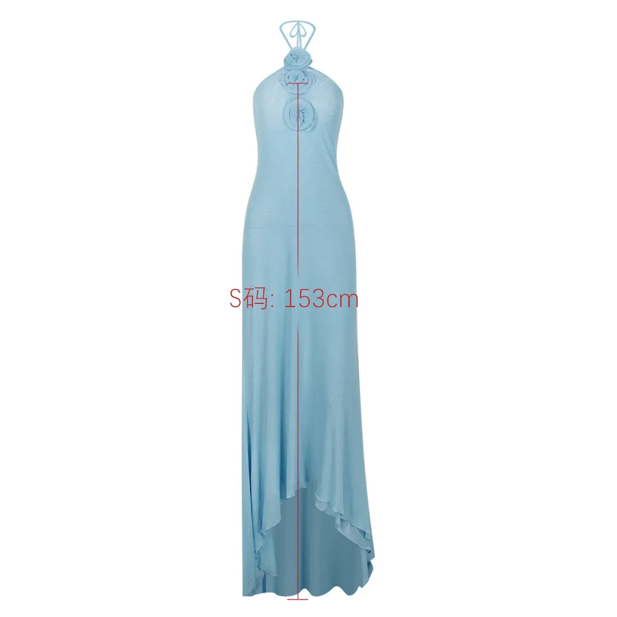 Women Sheer Mesh Dress Sexy Halter See through Beach Dress Elegant Appliques Maxi Holiday Vacation Dress