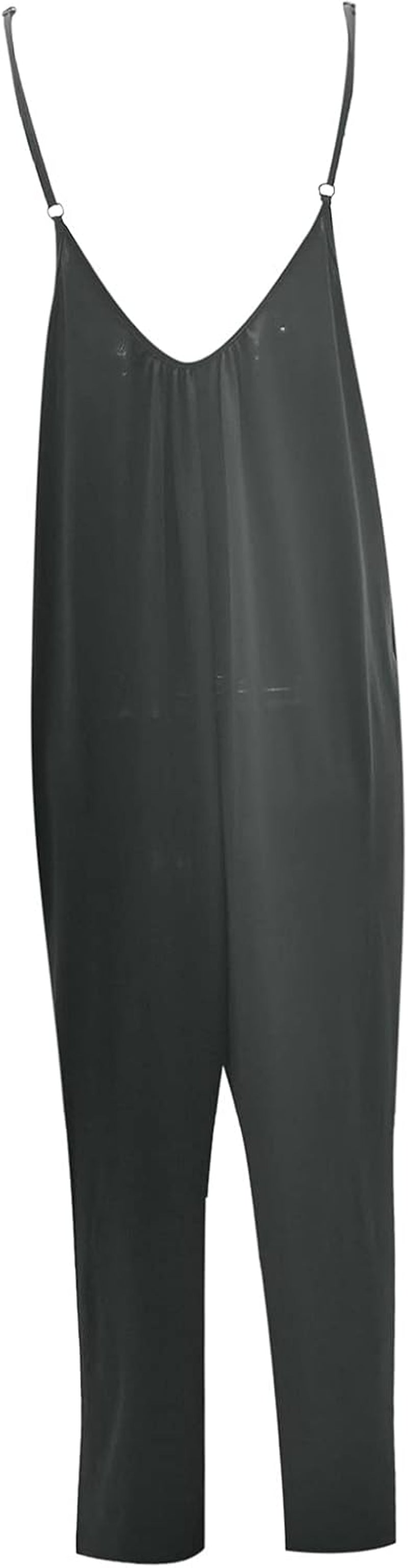 Women Summer Romper Loose Baggy Cotton V Neck Overalls Solid Color Spaghetti Strap Jumpsuits with Pockets