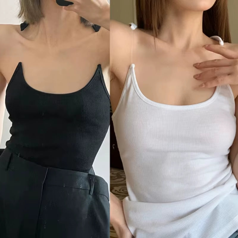 Women Summer Sleeveless Cropped Vest Top Solid Color Large Neck Crop Top Invisible Strap Bustier Vest Features: Invisible straps vest...