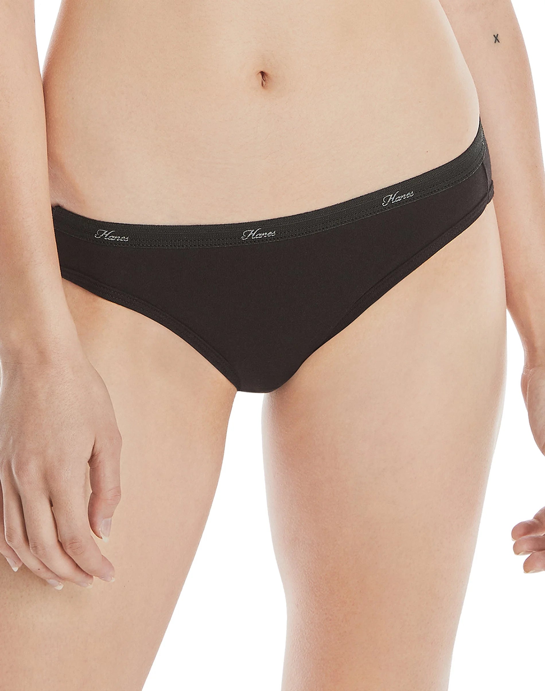- TEN TIMES THE COMFORT Soft and breathable, this better-than-basic cotton bikini underwear is made with Hanes Cool Comfort® fabric that wicks moisture from your skin to keep you comfortable all day. The modern bikini silhouette features high-cut legs and moderate front and back coverage with an ultra-soft waistband. No-ride-up leg bands stay in place while Tagless® construction eliminates that annoying itch. Know what's even better? The cotton is preshrunk, so the size you buy is the size these bikini panties stay. Stock up and save with a value 10-pack of bikini underwear in assorted colors.