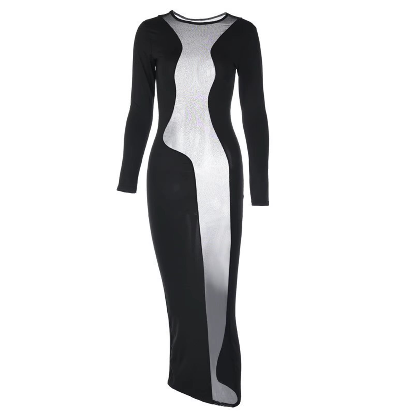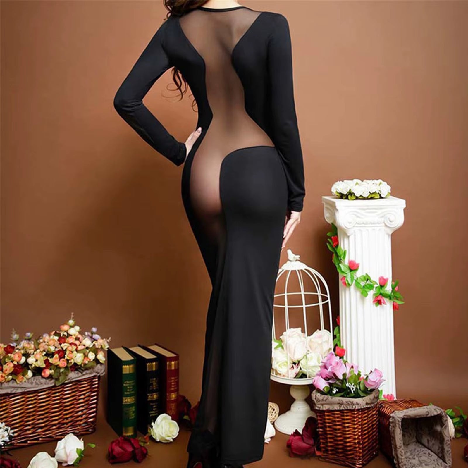 Women'S Sexy Split Exotic Dress Mesh See through Dress Party Nightclub Sexy Long Sleeve Long Dress Hot Babydoll Ladies Vestidos