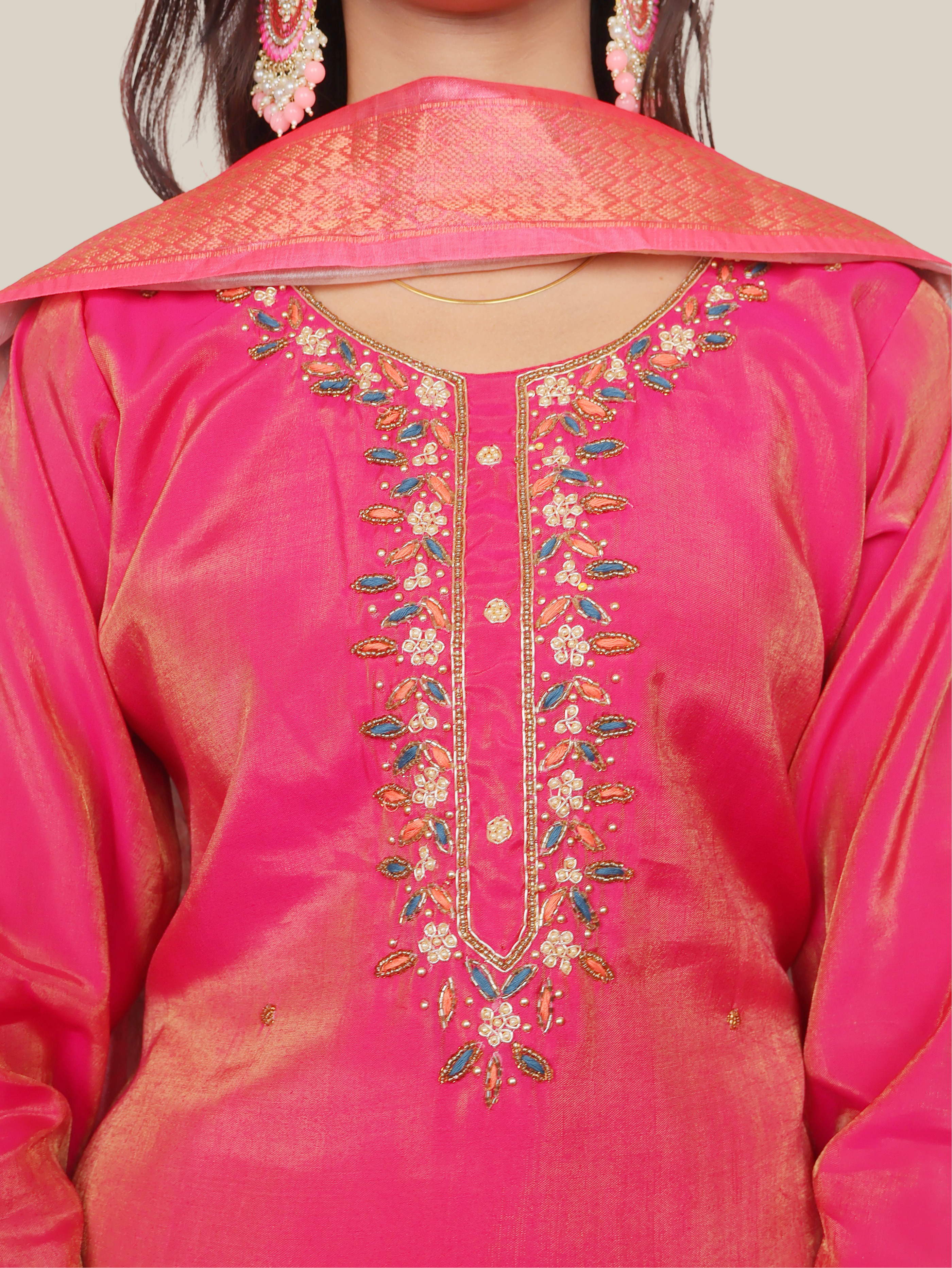 Embrace sophistication with the Party Wear Embellished Kurta Pant Set with Dupatta, crafted for women who wish to make a...